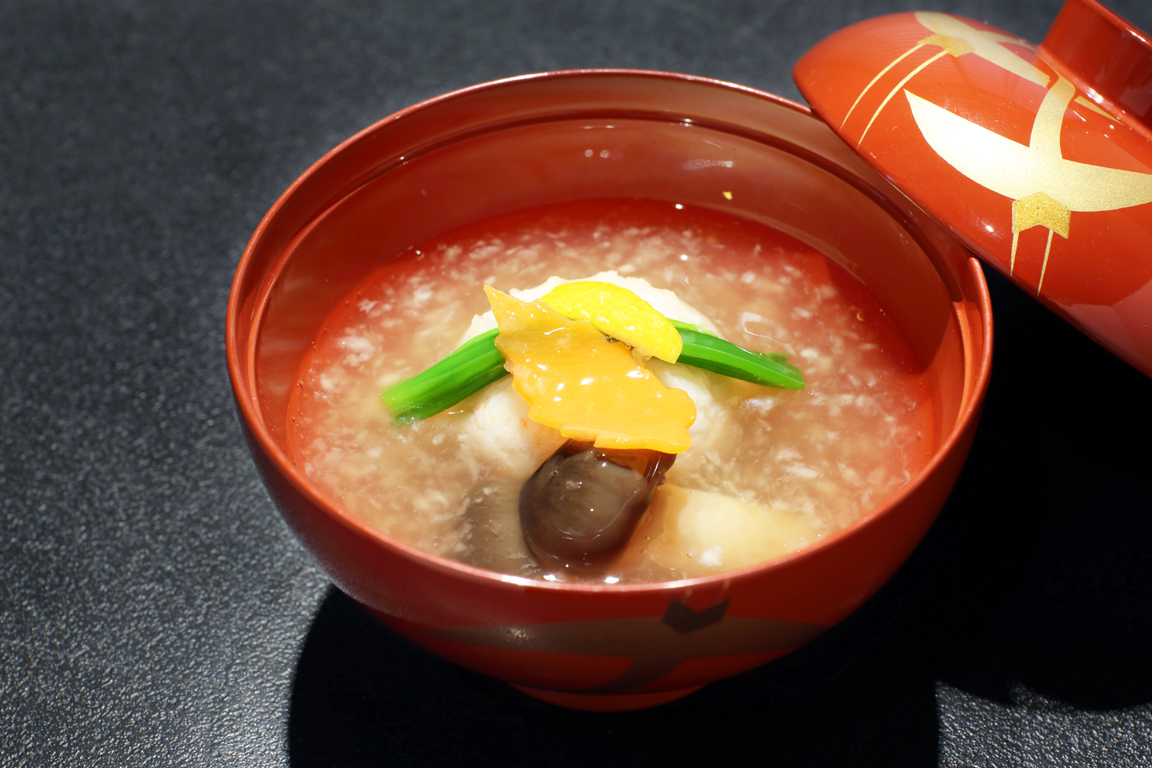 [留 椀]赤出汁 粟麩 浅葱 粉山椒